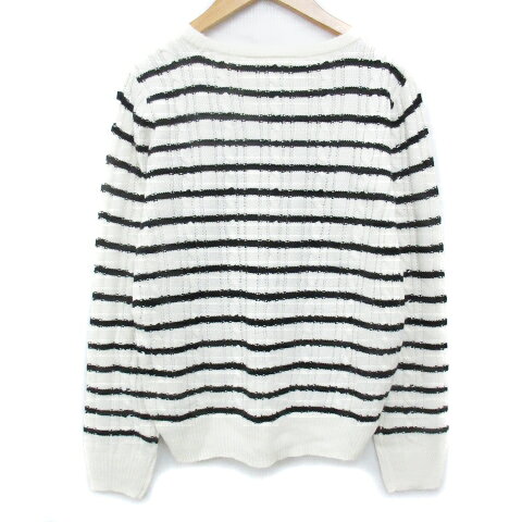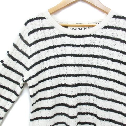 【中古】ワームス WARMTH ニット セーター 長袖 ラウンドネック ボーダー柄 M 白 黒 ホワイト ブラック /FF33