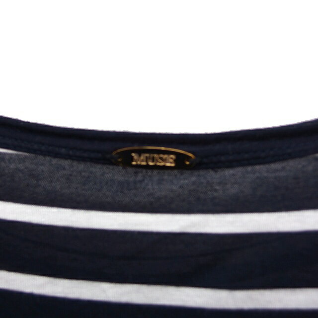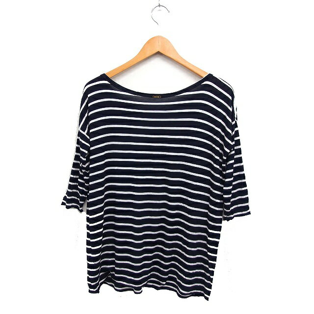 【中古】ミューズ MUSE ボーダー Tシャツ カットソー 五分袖 ボートネック ネイビー 紺 /FT21 レディース