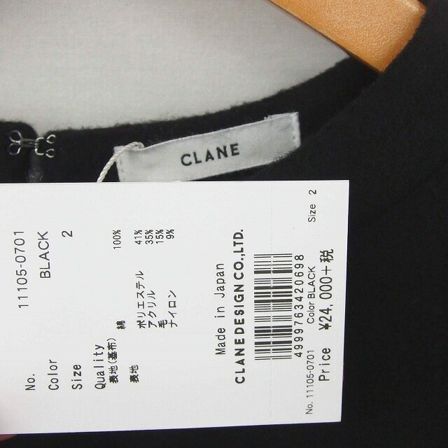 【中古】未使用品 クラネ CLANE タグ付き トレーナー ビッグシルエット ウール混 厚手 長袖 2 黒 ブラック /TT レディース
