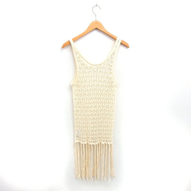 【中古】セレクトモカ SELECTMOCA チュニック 透け編み フリンジ プルオーバー 薄手 ノースリーブ F クリーム /TT レディース