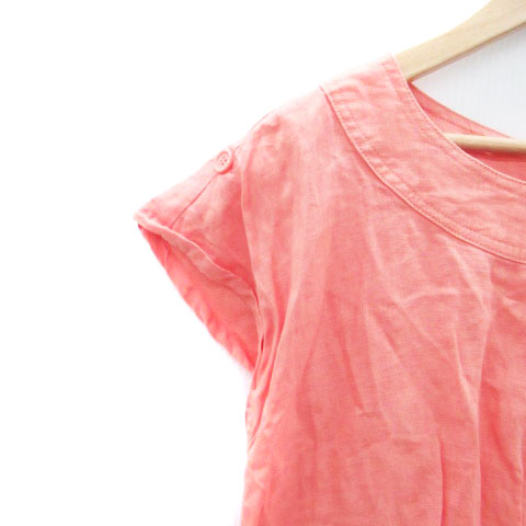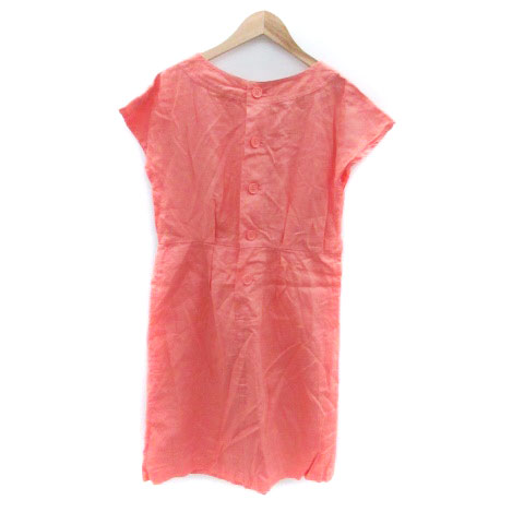 【中古】ユナイテッドアローズ A DAY IN THE LIFE UNITED ARROWS ワンピース ラウンドネック 半袖 ひざ丈 麻 リネン サーモンピンク /HO39 レディース
