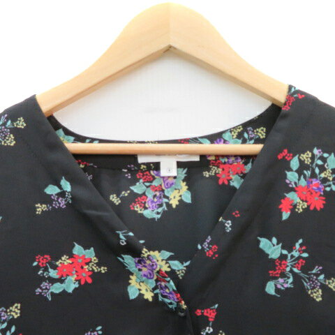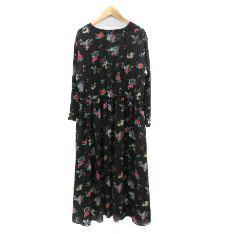 【中古】ニコアンド Niko and.. シャツワンピース ロング丈 長袖 Vネック 花柄 4 マルチカラー 黒 ブラック /YK23 レディース