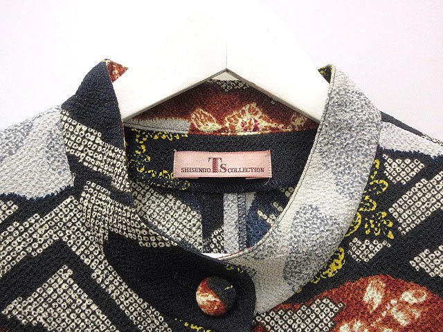 【中古】シセンドウ 詩仙堂 HITOSHI TAMURA ちりめん 縮緬 チュニック ブラウス ネイビー系 和柄 絞り風プリント ドルマン レディース