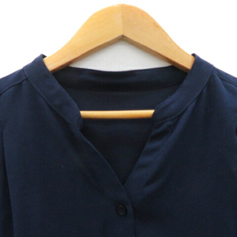 【中古】シューラルー SHOO・LA・RUE シャツワンピース ロング丈 半袖 スリットネック L 紺 ネイビー /YK38 レディース