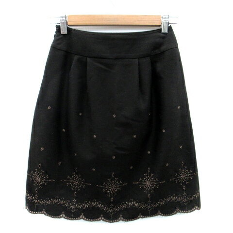 実寸サイズウエスト:60cm ヒップ:96cm スカート丈:51cm 素材表地 毛 98% ポリウレタン 2% 刺繍糸 レーヨン 100% 裏地 ポリエステル 100%色ダークブラウン