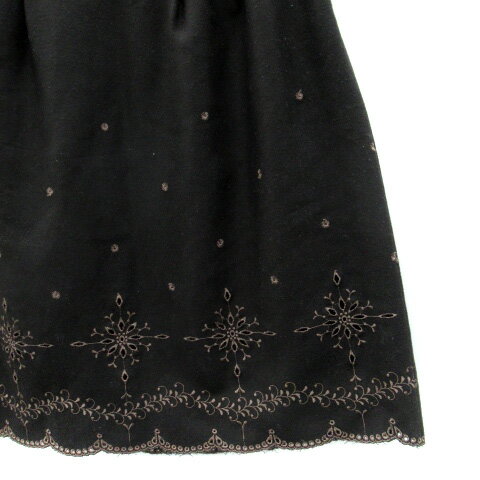 【中古】エフデ ef-de フレアスカート ひざ丈 刺繍 7 茶 ダークブラウン /SM14 レディース