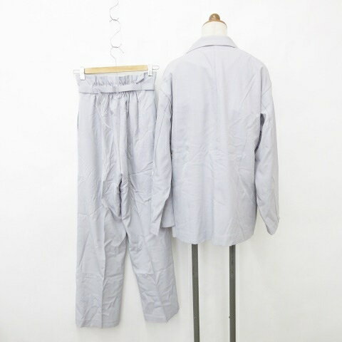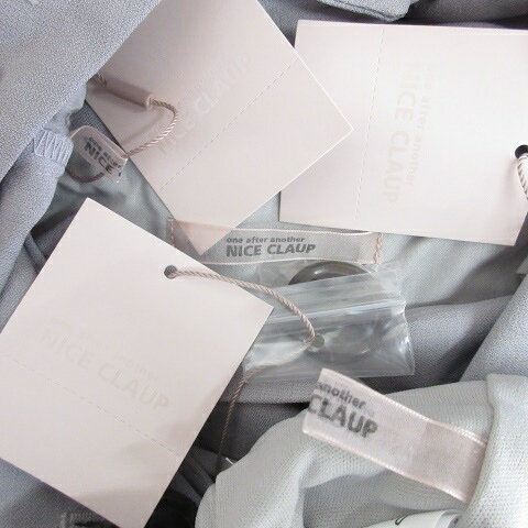 【中古】未使用品 ワンアフター アナザー ナイスクラップ one after another NICE CLAUP セットアップ 3点セット テーラージャケット ダブル ビスチェ フリル シャーリング ワイドパンツ ベルト グレー F レディース
