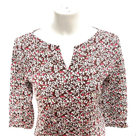 【中古】レイビームス Ray Beams シャツ ブラウス 長袖 総柄 M 茶 ブラウン /RT レディース