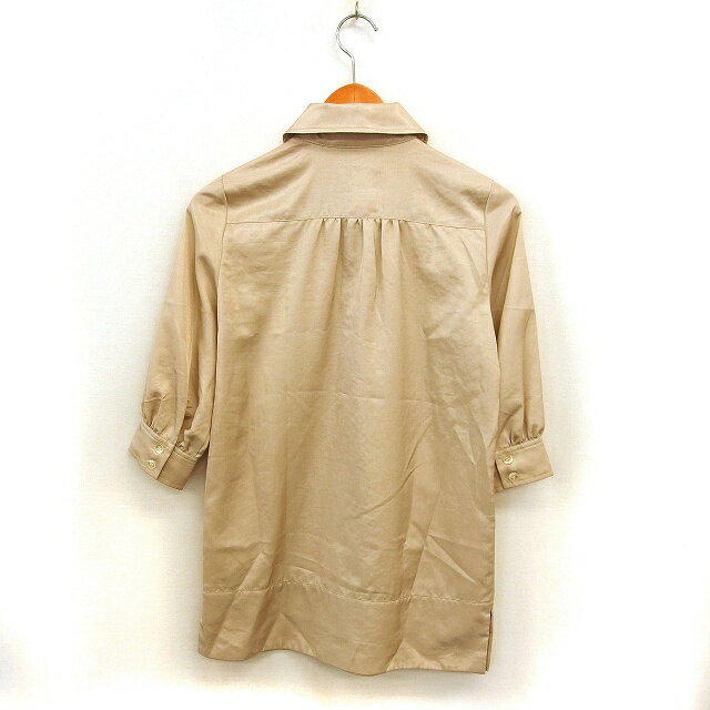 【中古】エムプルミエ ブラック M-Premier BLACK ステンカラー チュニック ブラウス 比翼仕立て スリット ギャザー ハーフボタン 七分袖 34 ベージュ /NT2 レディース