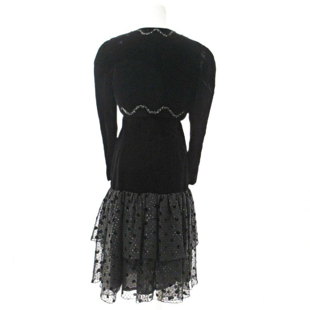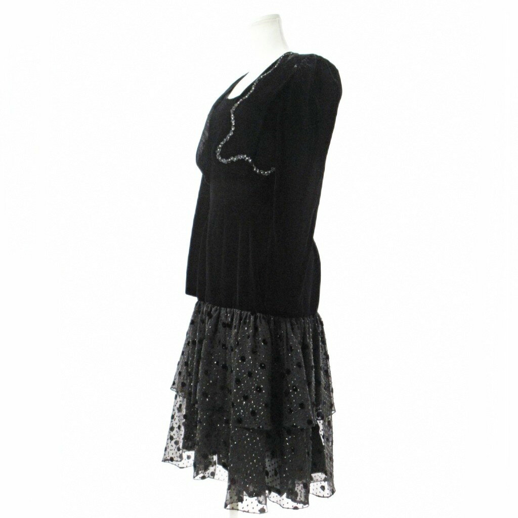 【中古】Petit Anne プチアンヌ アンサンブル フレンチスリーブ ワンピース ボレロ ベルベット シフォン 黒 ブラック 0825 レディース