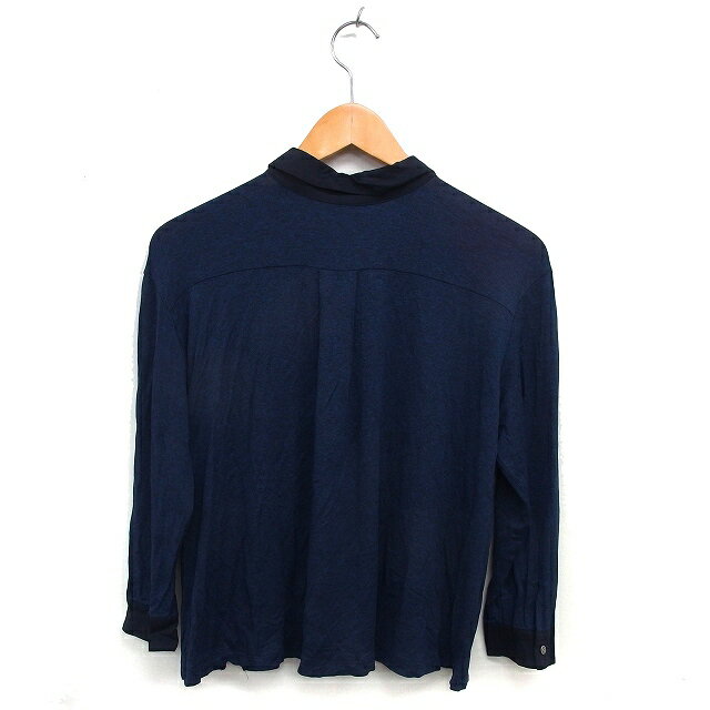 【中古】コムサ COMME CA ポロシャツ ステンカラー ワイド スリット 比翼仕立て 長袖 11 紺 ネイビー /NT31 レディース