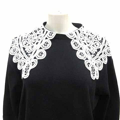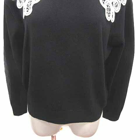 【中古】レピス Lepis ニット カットソー 付け襟 レース L〜LL 黒 ブラック /YK レディース