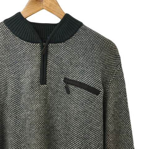 【中古】未使用品 ゴールデンベア GOLDEN BEAR セーター ニット プルオーバー ハーフジップ ウール リブ 長袖 L 緑 白 グリーン ホワイト メンズ