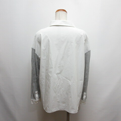【中古】ノーリーズ Nolley's sophi 袖異素材 スキッパー シャツ ブラウス 38 白×グレー 長袖 ワイド レディース