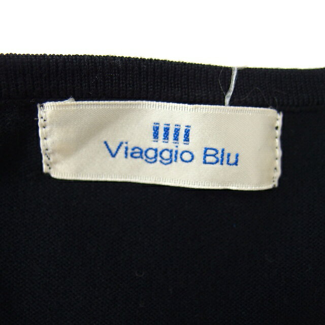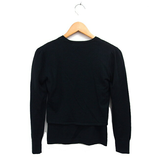 【中古】ビアッジョブルー Viaggio Blu アンサンブルニット ツインニット カーディガン クロップド タック 装飾 ハイゲージ ウール混 長袖 半袖 2 黒 ブラック /NT1 レディース