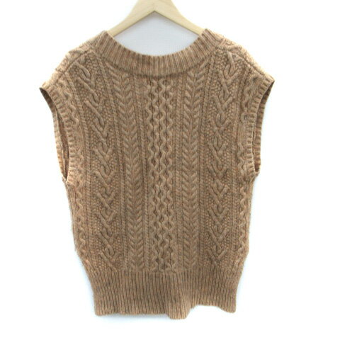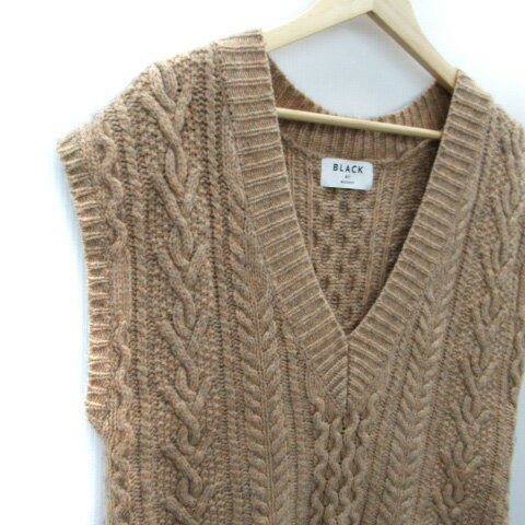 【中古】ブラック バイ マウジー BLACK by moussy ニットベスト ミドル丈 Vネック ケーブル編み ウール F ベージュ /SM8 レディース