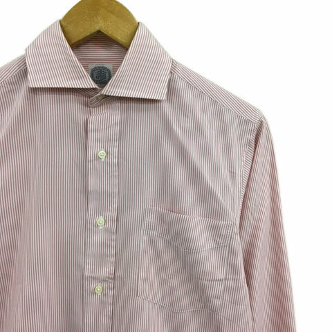 【中古】ジェイプレス J.PRESS シャツ カジュアル ワイドカラー ストライプ 長袖 37-80 ピンク 白 ホワイト メンズ