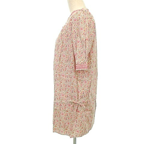 【中古】アマカ AMACA 美品 チュニック ブラウス 半袖 ペイズリー 花柄 38 M相当 ピンク系