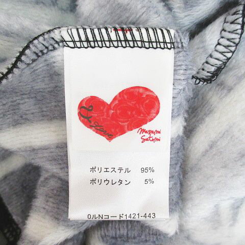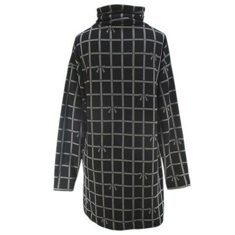 【中古】アンドラブ &LOVE 長袖 チュニック M 黒系 ブラック チェック柄 リボン プリント 裏起毛 ストレッチ レディース