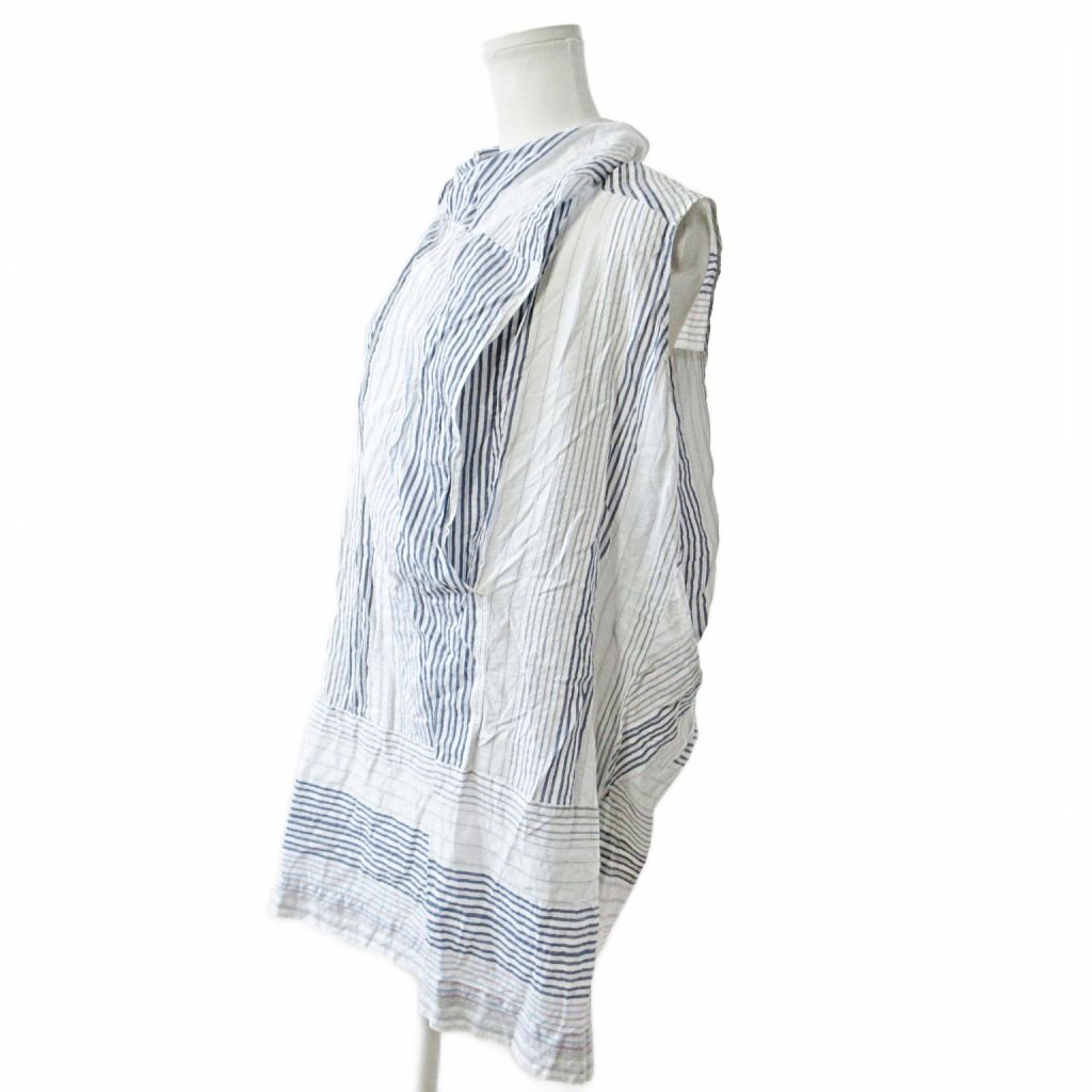 【中古】ステラマッカートニー STELLA McCARTNEY 17SS 変形 チュニック シャツ ワンピース ノースリーブ ストライプ 40 白 青 グレー 1016 レディース