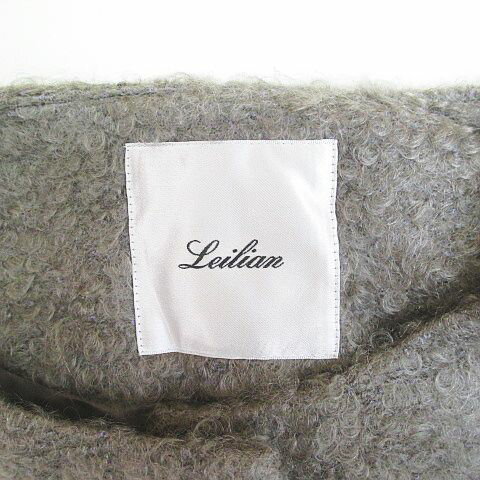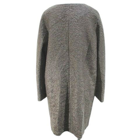 【中古】レリアン Leilian KS-0105134 ノーカラー コート ミドル丈 9 灰系 グレージュ 無地 スナップボタン 裏地 日本製 レディース
