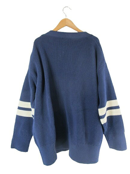 【中古】ローリーズファーム LOWRYS FARM ニット カーディガン 長袖 ボーダー 前開き サイズF ネイビー QQQ メンズ