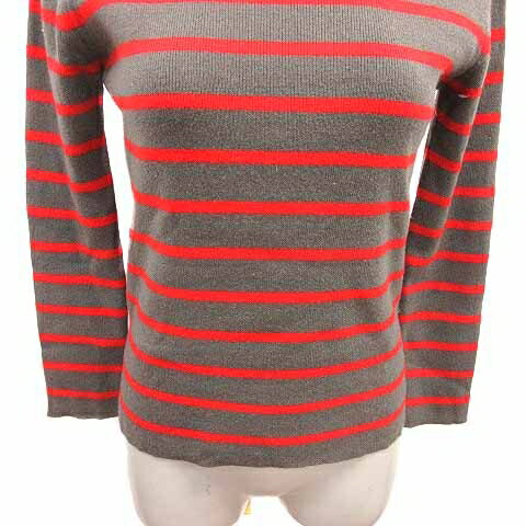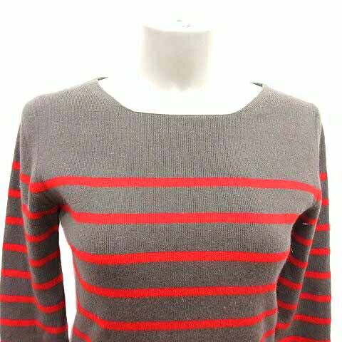 【中古】アイシービー iCB ニット カットソー ボーダー 長袖 ウール カシミヤ混 S グレージュ 赤 レッド /YK レディース