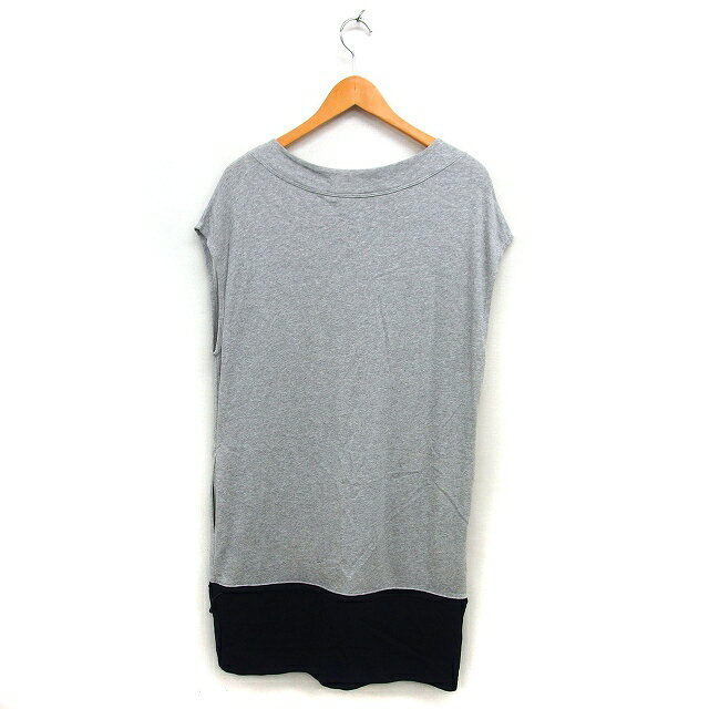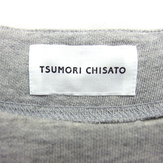 【中古】ツモリチサト TSUMORI CHISATO プリント チュニック ミニワンピース ツートンカラー ポンポン スウェット 半袖 2 グレー /NT27 レディース