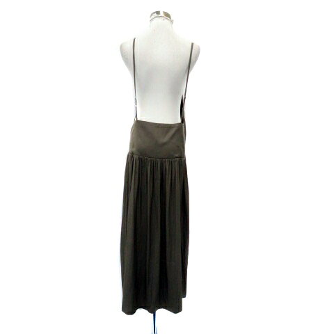 【中古】クロシェ CLOCHE ジャンパースカート キャミソールワンピース スクエアネック ロング丈 2 M カーキ /HO11 レディース