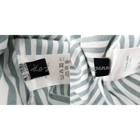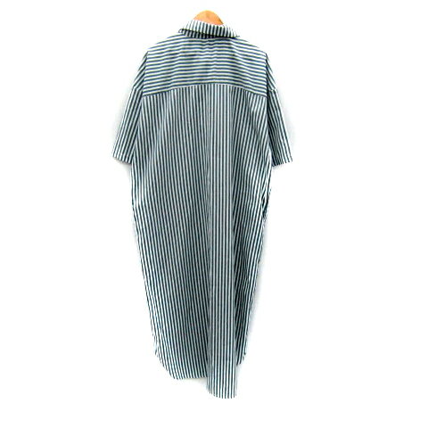 【中古】ラジエム La-gemme シャツワンピース ロング丈 マキシ丈 半袖 ストライプ柄 緑 グリーン 白 ホワイト /SY21 レディース