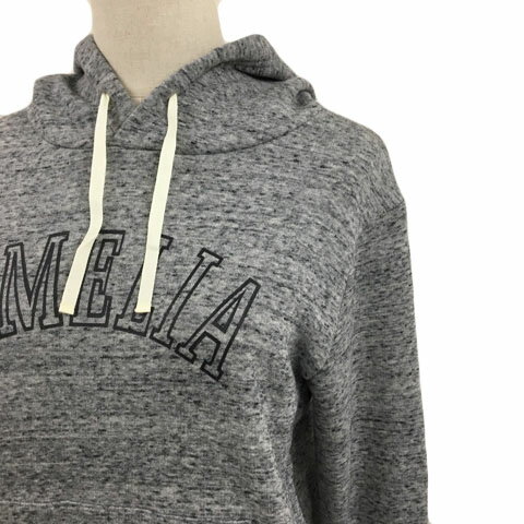 【中古】アキアゴーラペヂード aqui agora pedido パーカー フーディー プルオーバー ロゴ プリント 杢 メランジ 長袖 グレー 黒 ブラック レディース