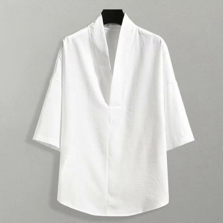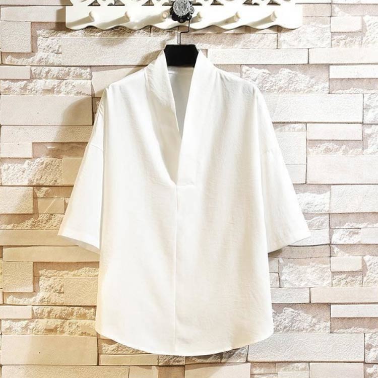 着物や作務衣、甚平、浴衣などのインナーとして着用いただける衿付きの男性用トップスです。