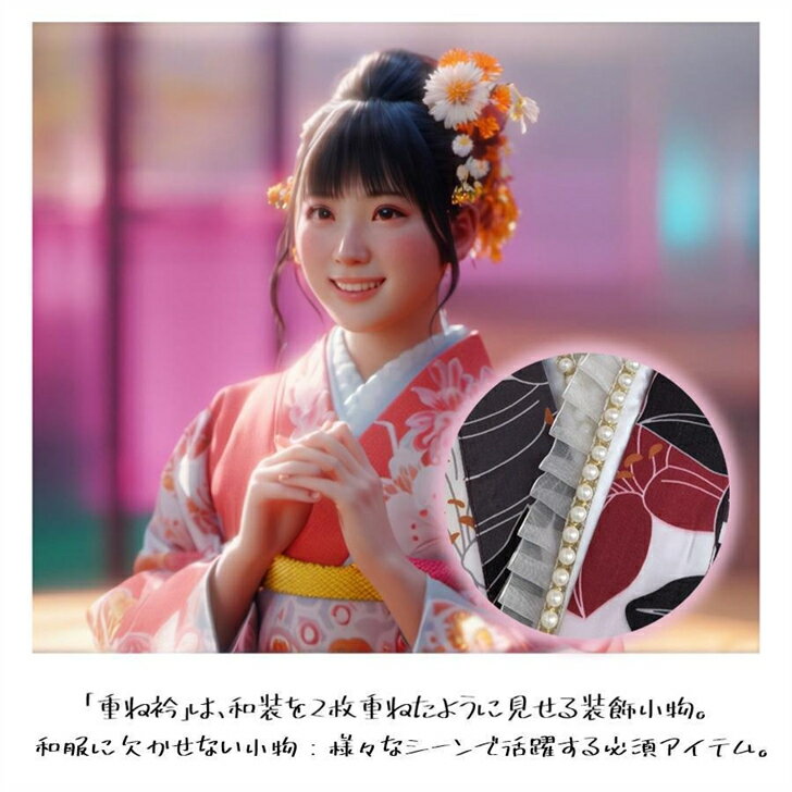 重ね衿 伊達衿 重ね襟 パール パール付き 和装 重ね衿 重ね襟 おしゃれ 華やか 古典 上品 成人式 振袖 卒業式 袴 結婚式 打掛 着物 和装 前撮り 伊達襟 成人式 振袖 卒業式 伊達襟 重ね襟 襟飾り成人式 華やかに彩る和の美しさ、重ね衿で特別な日をもっと上品に 5
