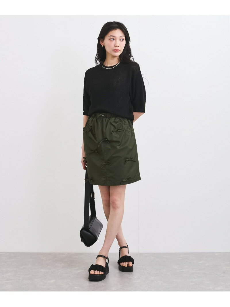【デザイン・シルエット】ミリタリー感あるナイロン素材とリボンモチーフが甘辛ミックスで可愛いミニスカート。