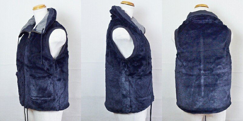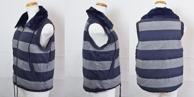 【ビジョン】≪セオリー≫PLST プラステ リバーシブル ジップアップ 中綿/ダウンベスト ボーダー/フェイクファー ネイビー系