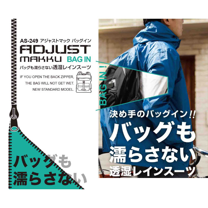 S M L LL EL 4L ブルー カーキ 雨具 かっぱ おしゃれ オシャレ かっこいい かわいい 男性用 女性用 ユニセックス 男女兼用 両用 最安値に挑戦!Makku マックってどんなブランド??「日常をフォーカスする」をコンセプトに機能性をデザインするレインプロダクトを展開 こちらの商品の素材、サイズ、機能などアジャストマックバックイン ADJUST MAKKU BAG IN レインウェア AS-7600 AS7600マックの軽量透湿レインスーツ。
