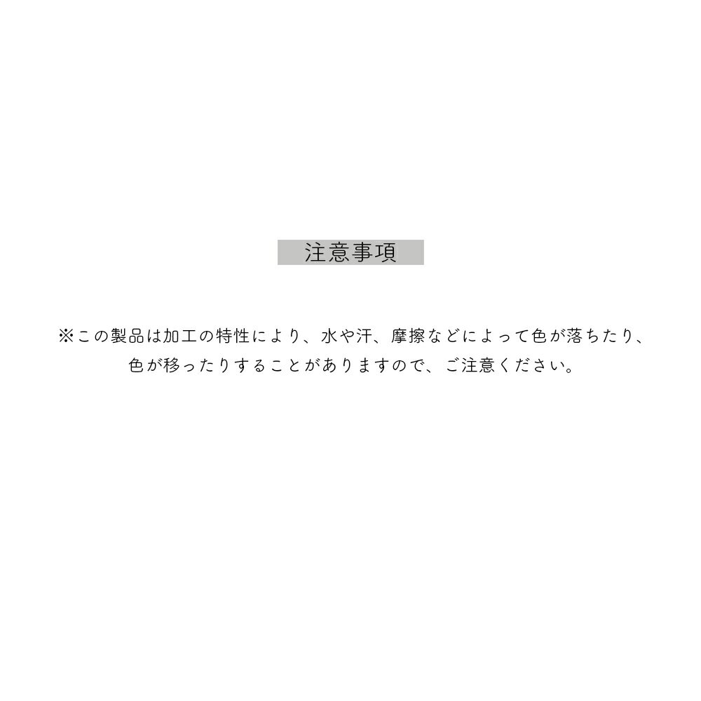 ※この製品は加工の特性により、水や汗、摩擦などによって色が落ちたり、色が移ったりすることがありますので、ご注意ください。