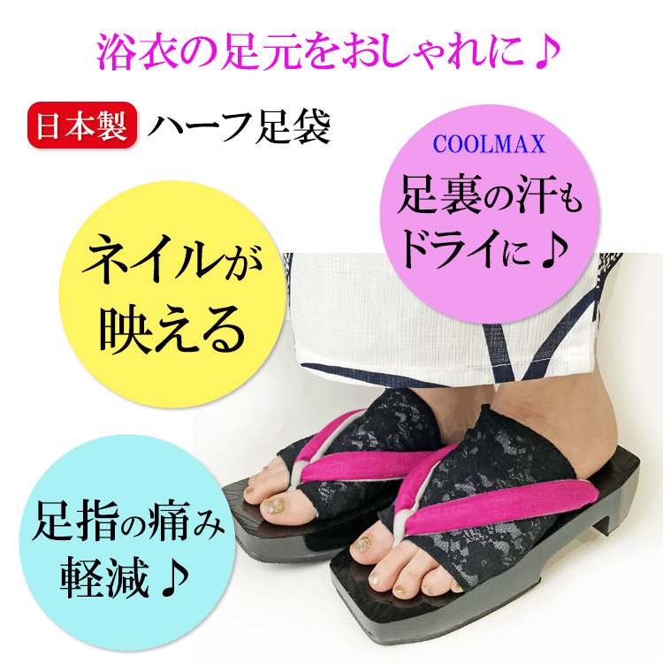 ★浴衣の下駄やサンダルに★ ネイルが映えるレースハーフ足袋♪