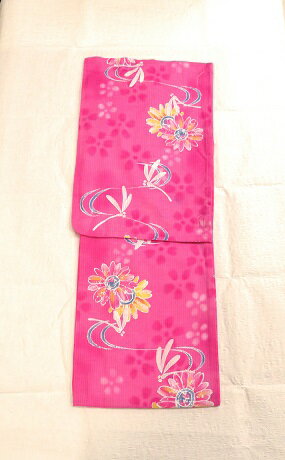 商品説明素材綿100% サイズ身丈:約163cm袖丈:約49cm裄:約64.5cm特徴 ピンク系でトンボと花柄のフリーサイズの浴衣です。
