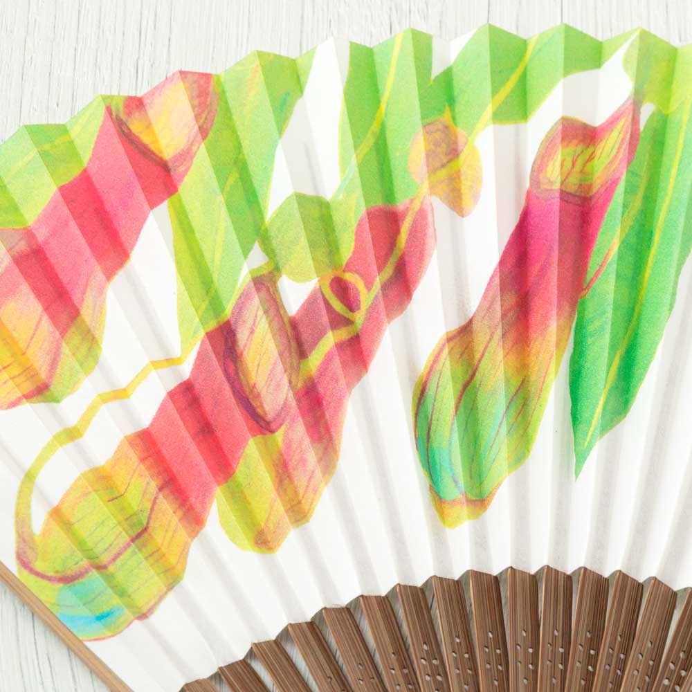 この扇子は、千年以上前からほとんど変わらない伝統技法で、職人が一つ一つ丁寧に作り上げた扇面に、和詩倶楽部の絵師が描き出す、愛らしくも斬新な、それでいて何処か懐かしさを感じる絵柄を配した、古くて新しい風がそよぐ一品です。