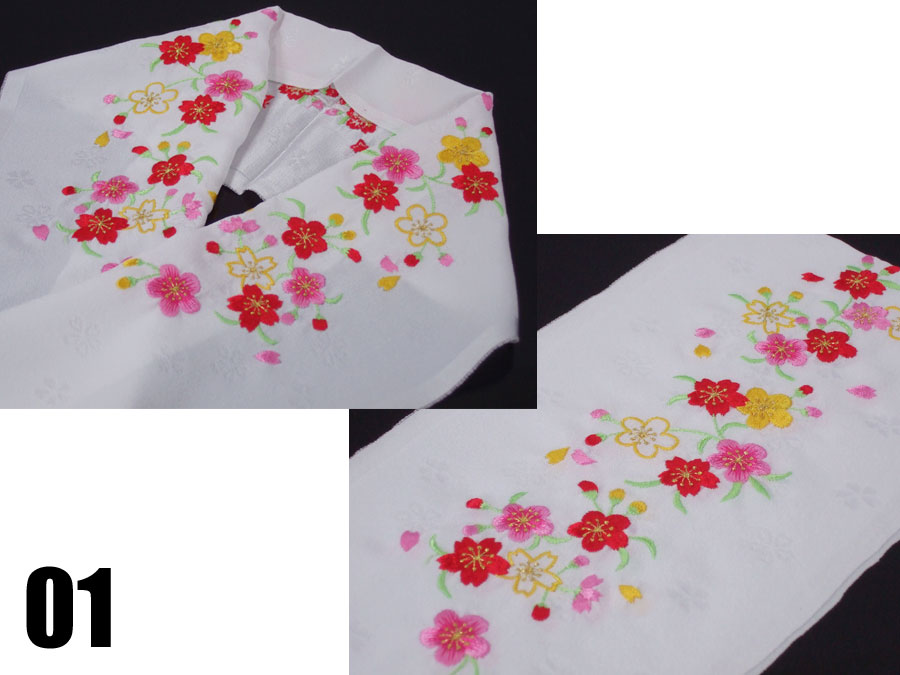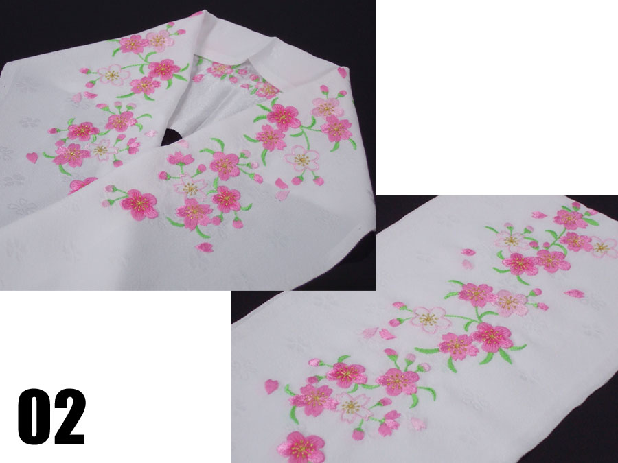 桜柄の地模様の入った正絹生地にたっぷりと桜の刺繍が施されています。
