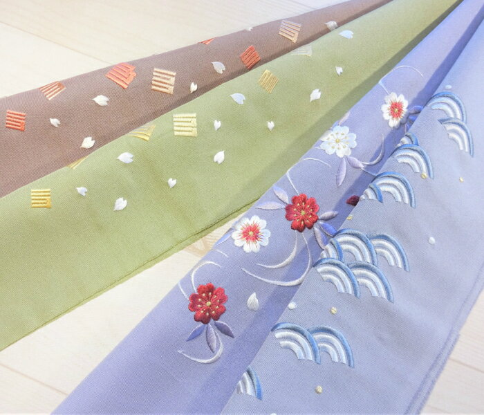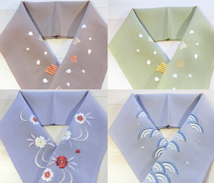 商品情報 素材 絹100%サイズ 114×17.5カラー新柄半衿 普段着 小紋 紬 和装小物 着付け小物 着物小物 襟小物 色半衿 源氏香 流水 花柄 青海波 ネコポス 送料無料 京都【衿秀】さんの刺繍半襟 色半衿にさりげない刺繍で衿元の印象が変わります お洒落着に 2