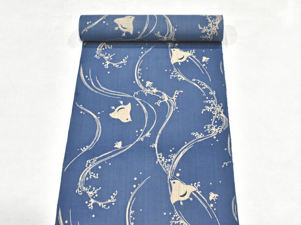 商品番号 y-084 価格 反物代88,000円+仕立て代17,000円=105,000円(本体価格) 品質表示 素材 綿100% 反物 長さ:約12メートル 巾:約38センチ 状態 新品 未仕立て品 日本製 色柄 地色:ほんの少し渋みを感じる納戸色系が基調柄名:流水に千鳥 発売元 竺仙(ちくせん) 商品説明 創業天保13年。