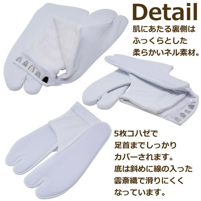◆何足でも送料無料! 何足でも その他の足袋と一緒でも ゆうパケット送料無料!! 東レ ストレッチ ネル足袋 5枚こはぜ 白 の解説 暖かい、起毛仕様の履きやすい、痛くならないストレッチ白足袋です。