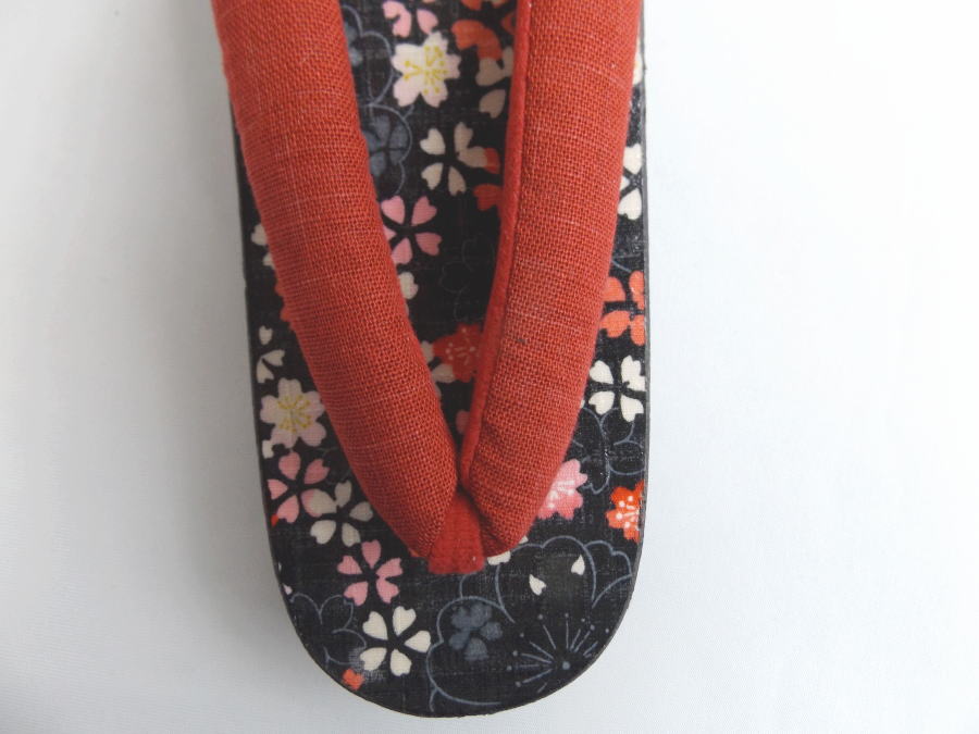 総柄桜柄を台の表面にラミネート加工した小粋でオシャレな下駄。
