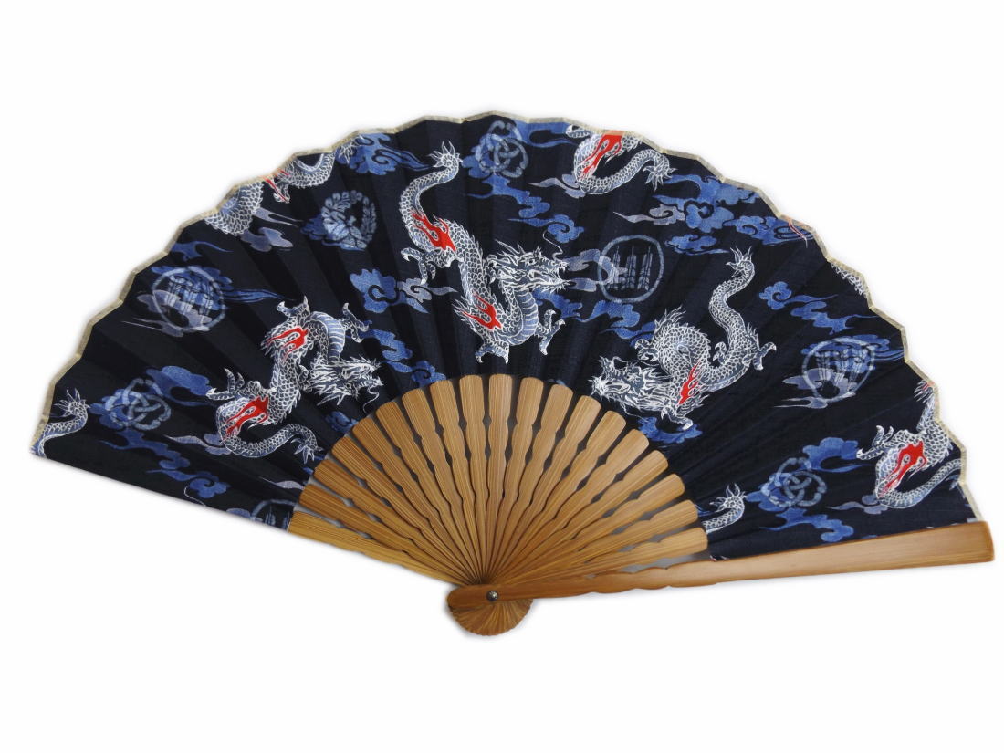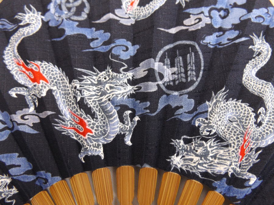 (サイズ):扇子ー長さ約23cm・閉時幅約2.6cm・全開時幅約41cm/扇子袋ー長さ約25cm・幅約4.5cm/ (素材):扇面部分&袋ー綿・骨部分竹/日本製
