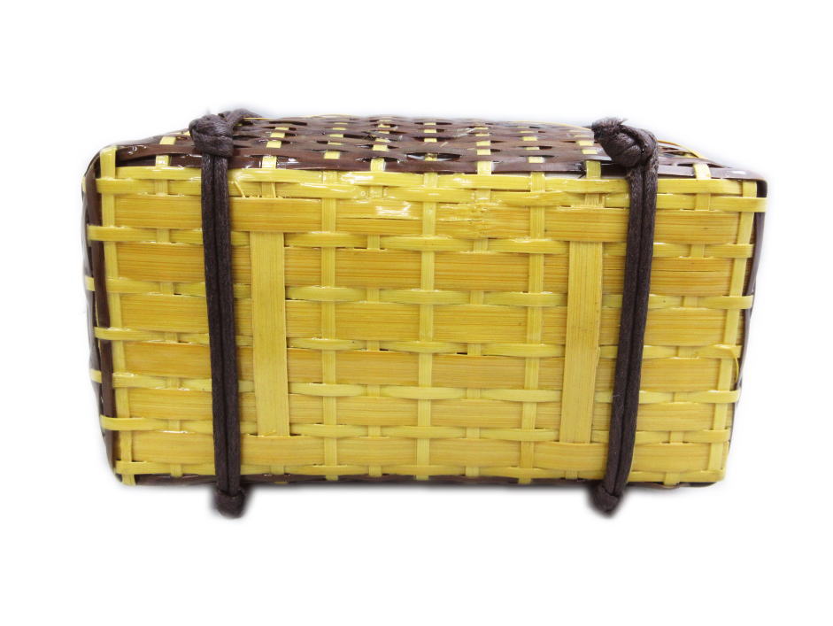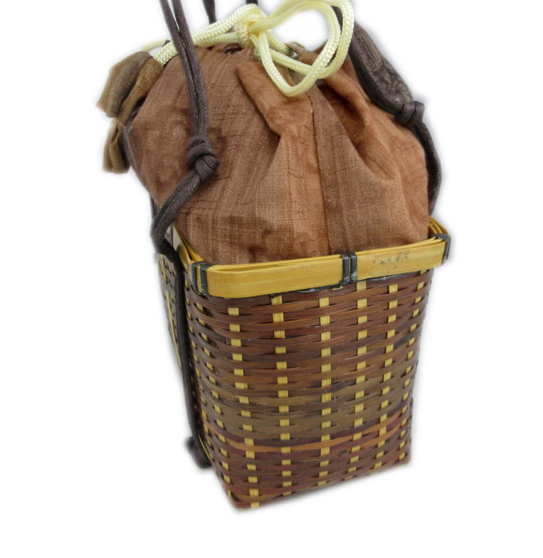 (サイズ):横約19~20cm・マチ約9.5~11cm・高さ約13cm(巾着高さ約23cm)/ (素材):竹かご・巾着綿100%/中国製