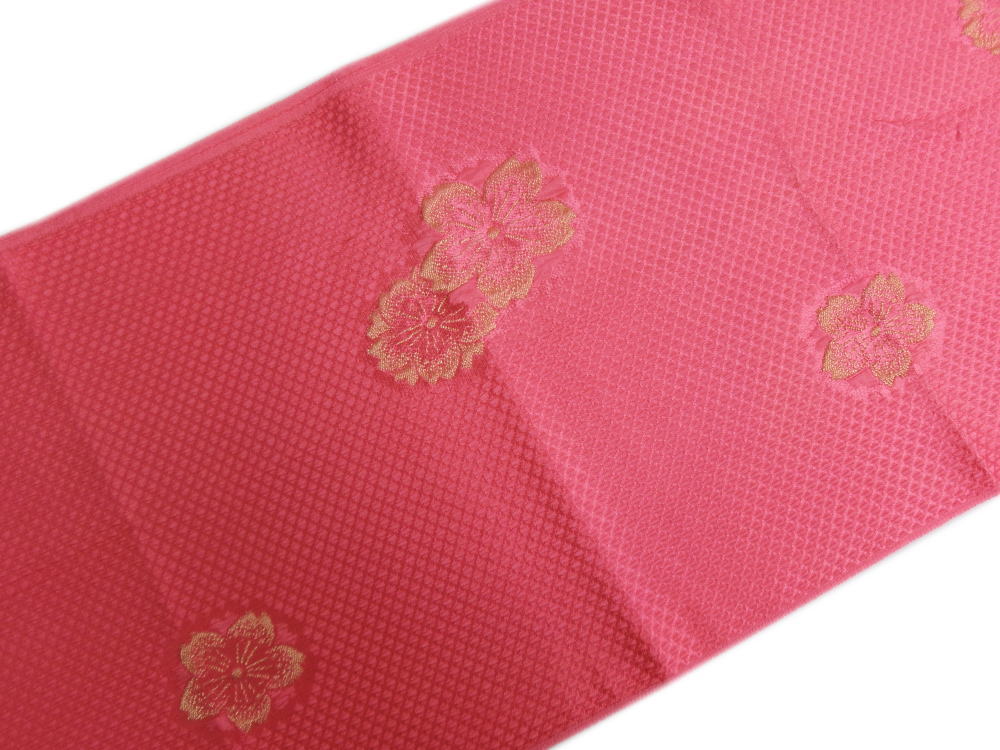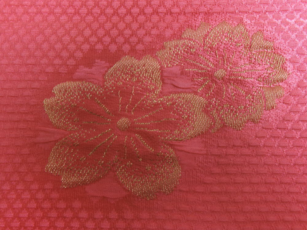 立体感ある菱織地の丹後ちりめんに、金糸入り縫取り刺繍桜柄が入った上品でオシャレな正絹帯あげ。