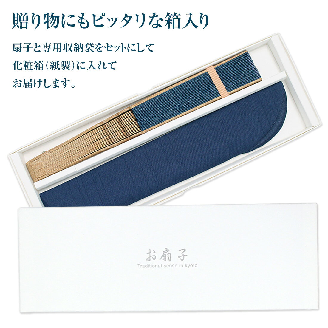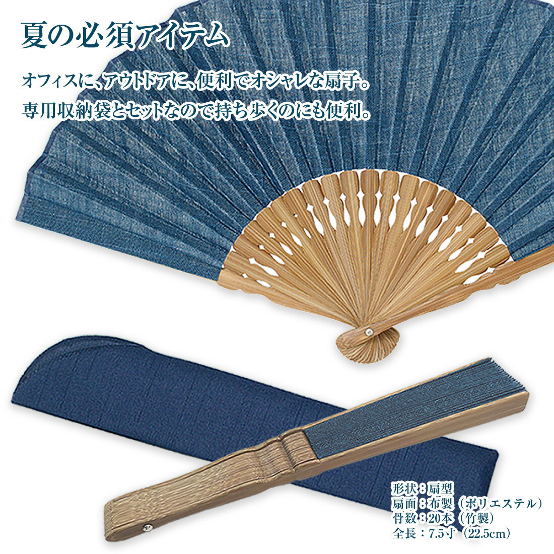 【商品情報】 商品名 メンズ 布扇子名入れ 収納袋セット 紺 材質 扇面:布製(ポリエステル) 親骨・中骨:木製(竹) サイズ・仕様 全長:7.5寸(約22.5cm) 総骨数:20本 収納袋サイズ:長さ24cm 幅4.5cm 紙箱サイズ:長さ26.5cm 幅9.5cm 厚さ2.1cm 名入れ(彫刻)文字数 かな・カナ・漢字:目安6文字/縦書きまたは横書きを選択 ローマ字:目安12文字/横書きのみ