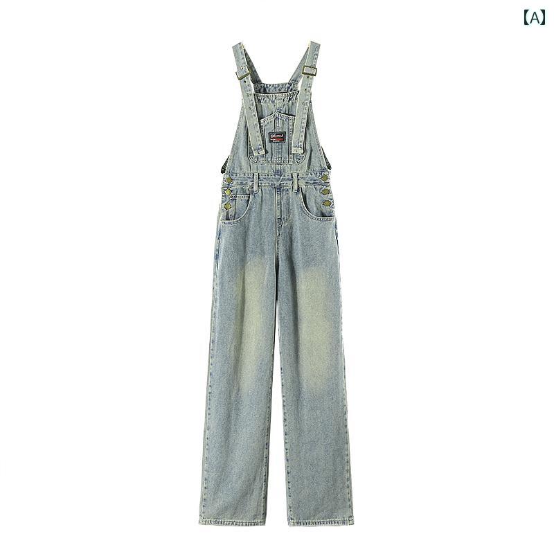 オーバーオール サロペット レディース 春秋 アメリカン ヴィンテージ風 デニム パンツ ストレート ワイドレッグ スリム ゆったり シンプル カジュアル 青